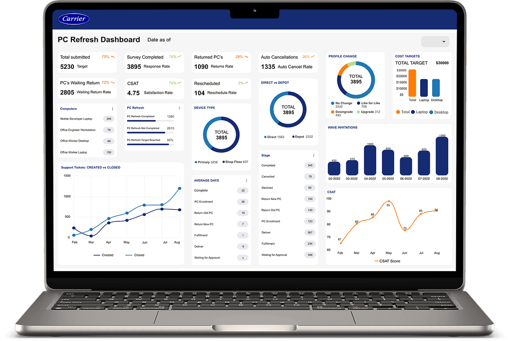 Introduced a dashboard that allows executives to monitor over 53K employees' PC upgrade process.